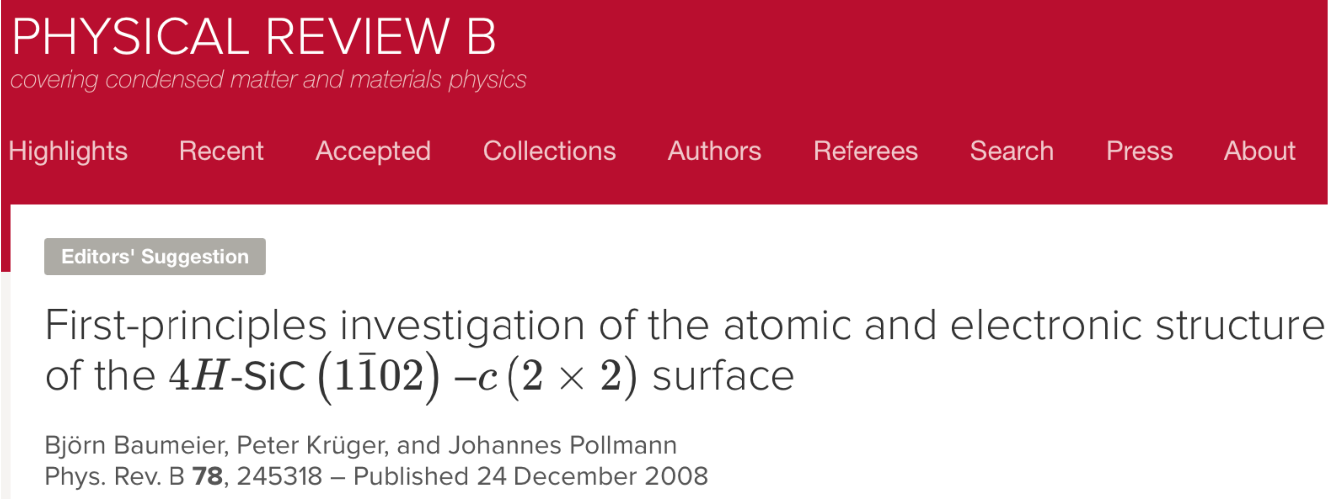 Björn Baumeier, Peter Krüger, and Johannes Pollmann, Physical Review B 78 (24) :245318 (2008).