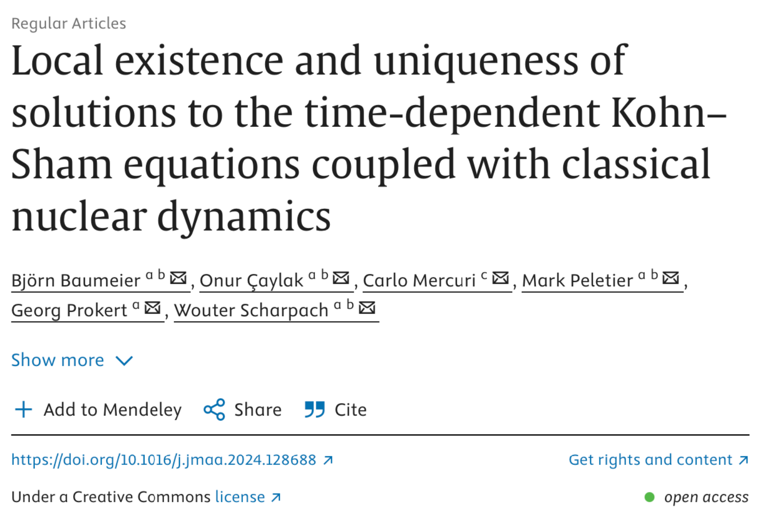 We prove short-time existence and uniqueness of solutions to the initial-value problem associated with a class of time-dependent Kohn–Sham equations coupled with Newtonian nuclear dynamics, combining Yajima’s theory for time-dependent Hamiltonians with Duhamel’s principle, based on suitable Lipschitz estimates. We consider a pure power exchange term within a generalisation of the so-called Local Density Approximation (LDA), identifying a range of exponents for the existence and uniqueness of solutions to the Kohn–Sham equations.