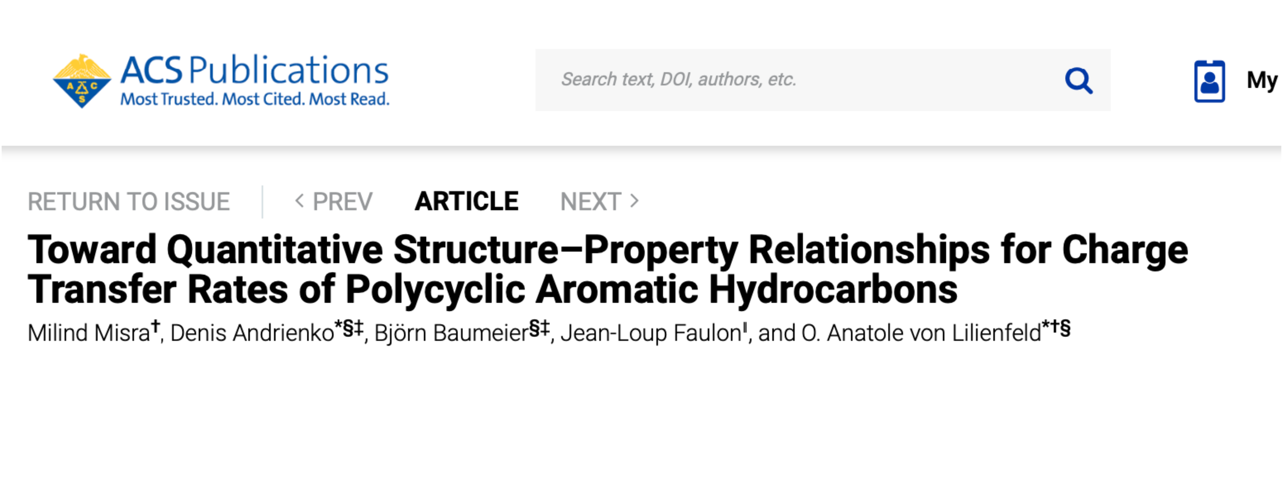 Quantitative structure–property relationships (QSPRs) have been developed and assessed for predicting the reorganization energy of polycyclic aromatic hydrocarbons (PAHs). Preliminary QSPR models, based on a combination of molecular signature and electronic eigenvalue difference descriptors, have been trained using more than 200 PAHs. Monte Carlo cross-validation systematically improves the performance of the models through progressive reduction of the training set and selection of best performing training subsets. The final biased QSPR model yields correlation coefficients q2 and r2 of 0.7 and 0.8, respectively, and an estimated error in predicting reorganization energy of ±0.014 eV.